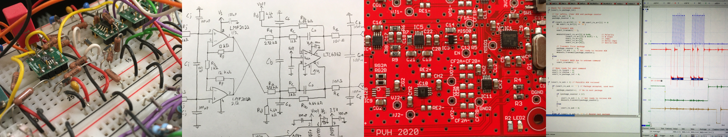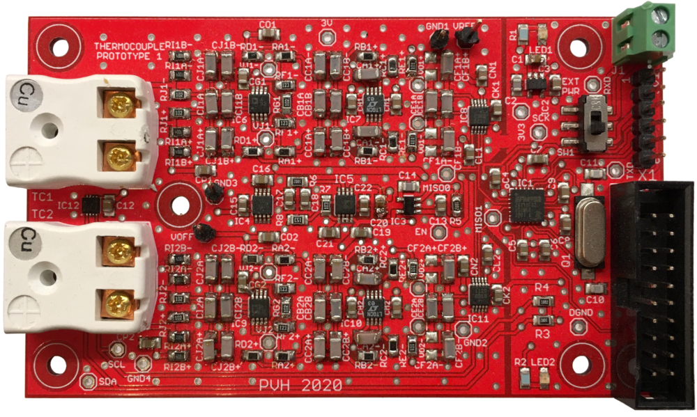 Nedenfor er vist to eksempler på sensor-interfaces, til temperaturmåling med termopar. De to prototyper er designet til forskellige formål, og efter forskellige krav og specifikationer. Efter designfasen, blev de analoge delkredsløb verificeret på loddefri prøveplade, men ellers gik jeg stort set direkte fra diagram til PCB i begge tilfælde.